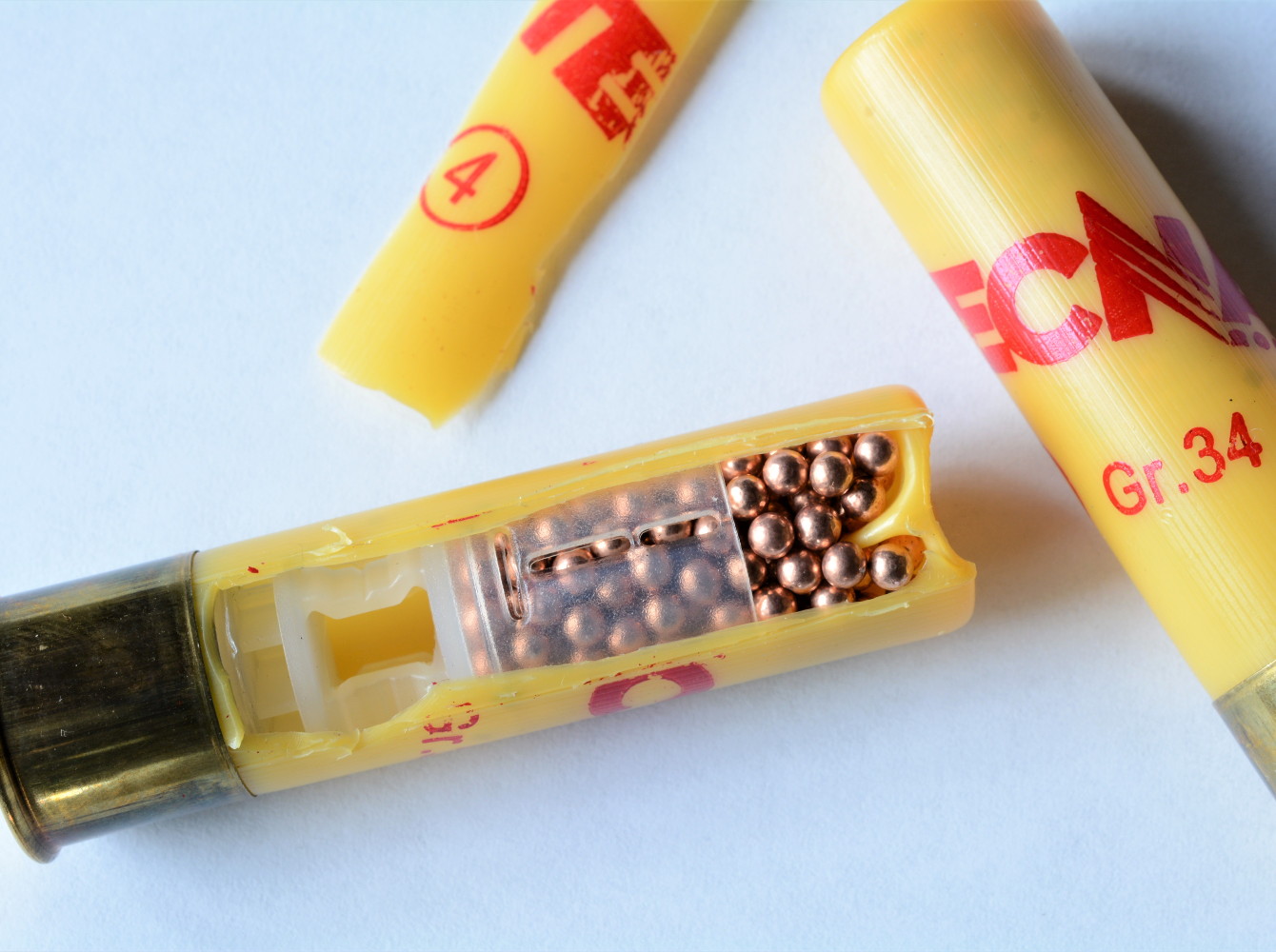 - Pallini: 34 grammi di piombo numero 4 (3,1 mm di diametro) ramato