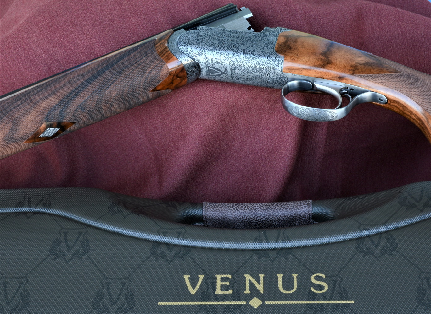 Il Rizzini Venus in calibro 28 è un gran bel fucile, che accomuna fattezze estetiche in grado di conquistare il cuore del pubblico femminile ma anche di presentarsi sul campo di caccia con un’arma destinata a giocare il ruolo del protagonista. La dotazione di serie prevede inoltre un’altra chicca: in aggiunta alle foderine in panno personalizzate nelle quali riporre l’arma smontata e agli strozzatori con chiave, il fucile è corredato anche di una valigetta dedicata. Si tratta di una motor case compatta ed elegante, foderata internamente in velluto bianco, personalizzata con una miriade di piccole “V” in sovra impressione e munita di tre serrature a combinazione per un trasporto sicuro.