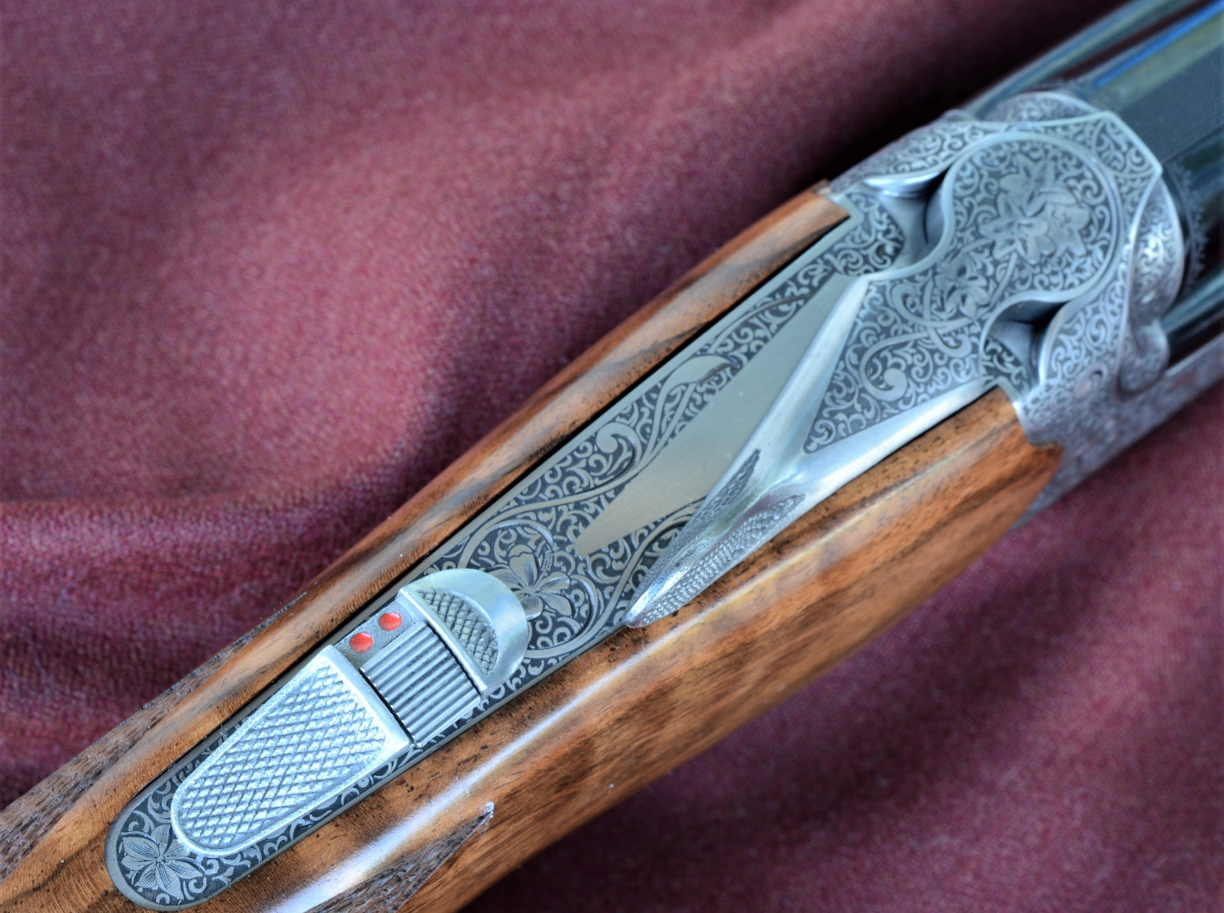 Decisamente ben fatta anche la zona della codetta di bascula, dove sicura e selettore della prima canna si azionano con facilità e sicurezza; i pallini rossi indicano quale canna spari per prima.