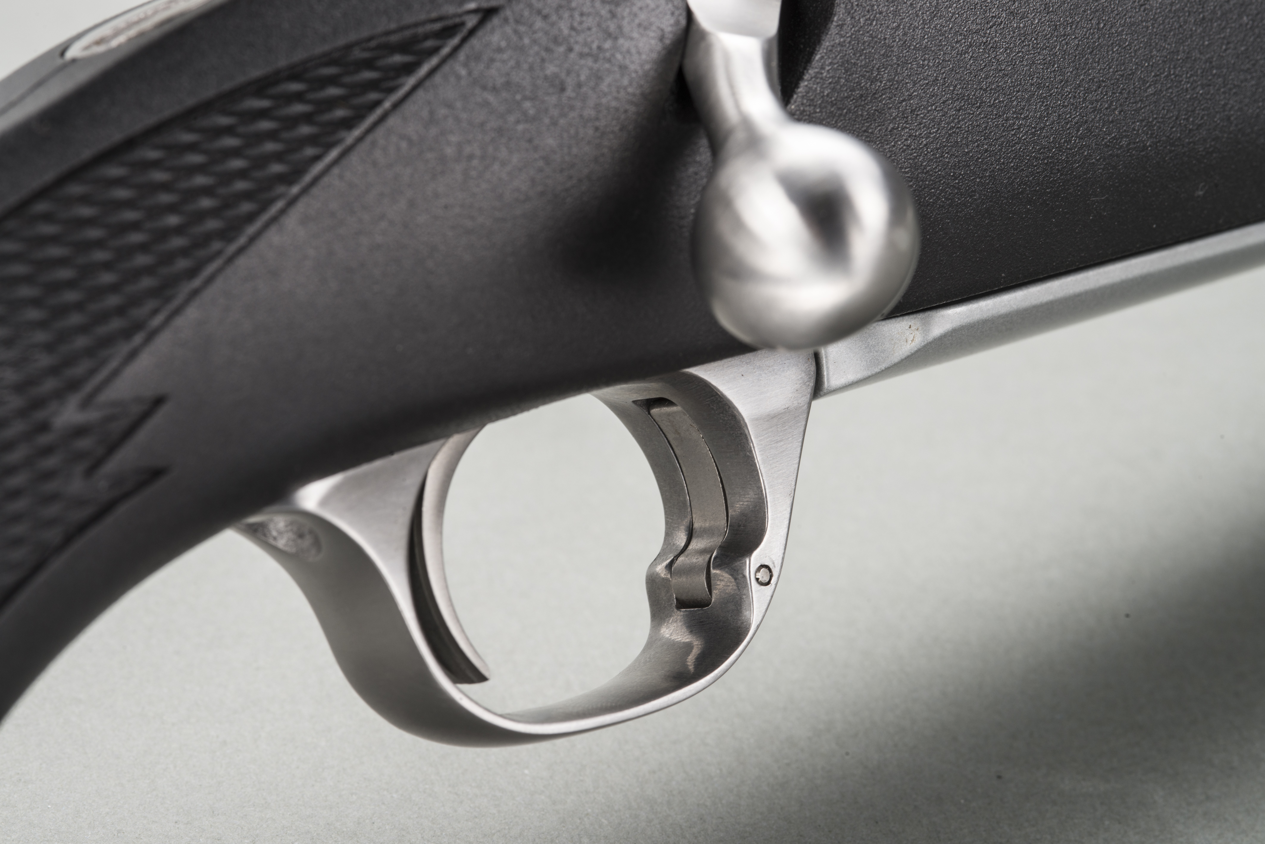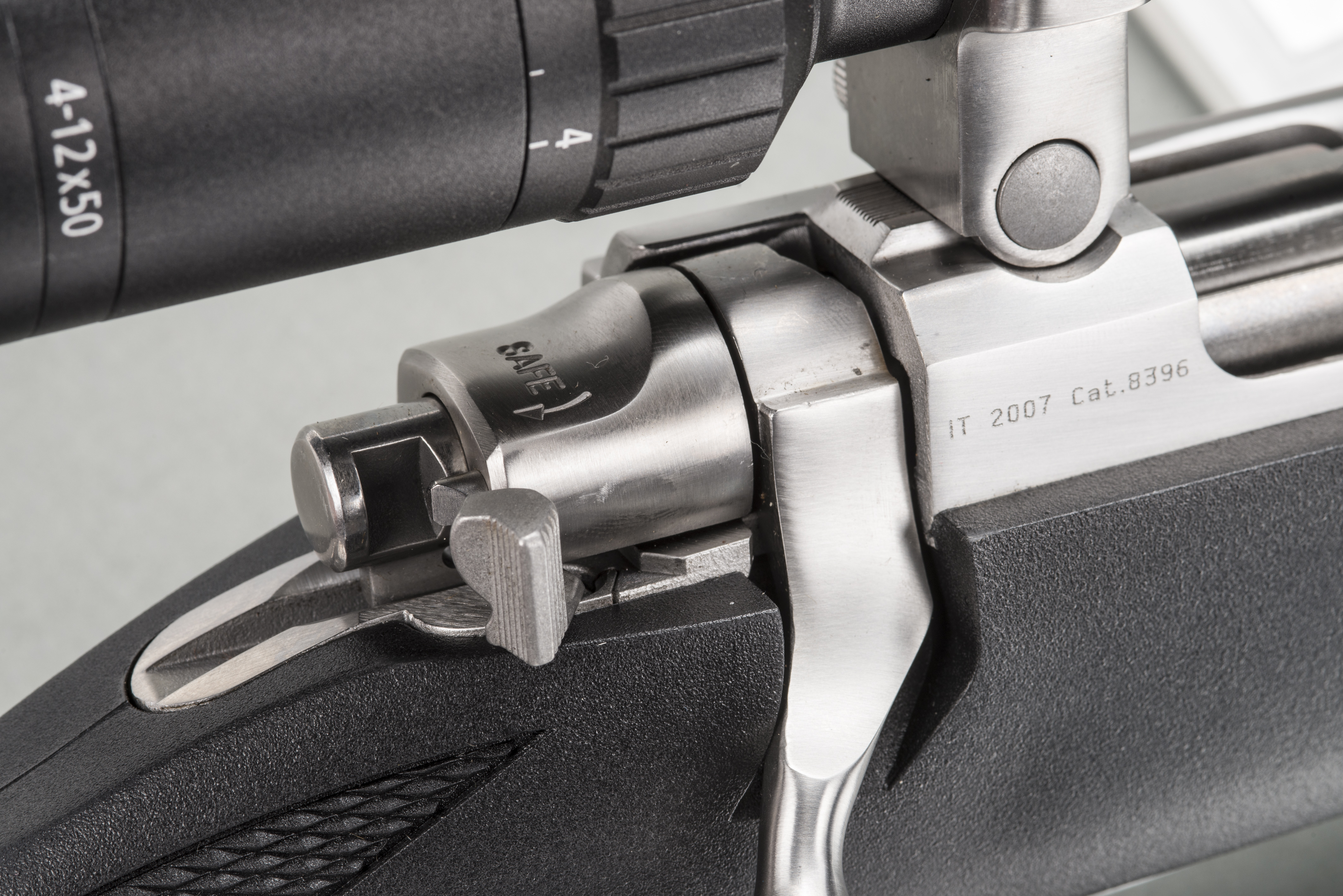 La carabina che abbiamo testato presso la sede dell’importatore italiano – Bignami – è la M77 Mark II nella versione All Weather Synthetic che, rispetto alla versione standard della bolt di casa Ruger con calcio in legno, offre un allestimento ideale per l’impiego in condizioni critiche: i dettagli in acciaio inox e la calciatura in tecnopolimero ne fanno infatti uno strumento forse non bello da vedere – anche se non è certo da meno di tante altre declinazioni moderne in sintetico – ma perfettamente commisurato alla destinazione che gli è propria. L’otturatore che la equipaggia è quello di derivazione Mauser con due alette e unghia estrattrice lunga a lamina. Rispetto al disegno Mauser, il canale per l’espulsore risulta in posizione ribassata invece che sull’aletta sinistra. Il controlled feeding a lamina permette una spinta longitudinale simmetrica sul fondello, evitando così asimmetrie d’inserimento in camera. Il componente è realizzato in acciaio inossidabile e porta un manubrio che ne consente l’apertura mediante una rotazione di 90°. In prossimità della sua coda è disposto il comando della sicura; l’ampia leva che la equipaggia ne favorisce la rotazione in tutte le condizioni operative, anche con mano guantata. Lo sgancio dell’otturatore è reso possibile da una piastra laterale sollevabile posta sulla sinistra dell’azione. Molto interessante lo scatto, modificato rispetto all’originario sistema della Mark II: si chiama LC6 ed è costituito da 3 soli pezzi (molla, grilletto e tavola di scatto) che ne semplificano il funzionamento. L’esigenza di un nuovo scatto è stata sentita in anni recenti sulla spinta dei sistemi proposti dai produttori concorrenti, che sono riusciti a equipaggiare le proprie carabine di fascia più economica con un dispositivo molto più apprezzato che non gli scatti standard che costituivano la dotazione accettabile solo due decenni fa. Una miglior finitura delle superfici, la riduzione dei componenti e la presenza di angoli di contrasto più favorevoli hanno permesso di realizzare uno scatto di qualità molto elevata, anche se non registrabile. Con il suo LC6, Ruger si è messa in un colpo solo alla pari dei suoi concorrenti più agguerriti e ha eliminato uno dei motivi di critica alla sua carabina, che spesso veniva sottoposta a pesanti interventi di customizzazione dopo la vendita o alla completa sostituzione del componenti con uno dei tanti disponibili nel mercato dell’after market.