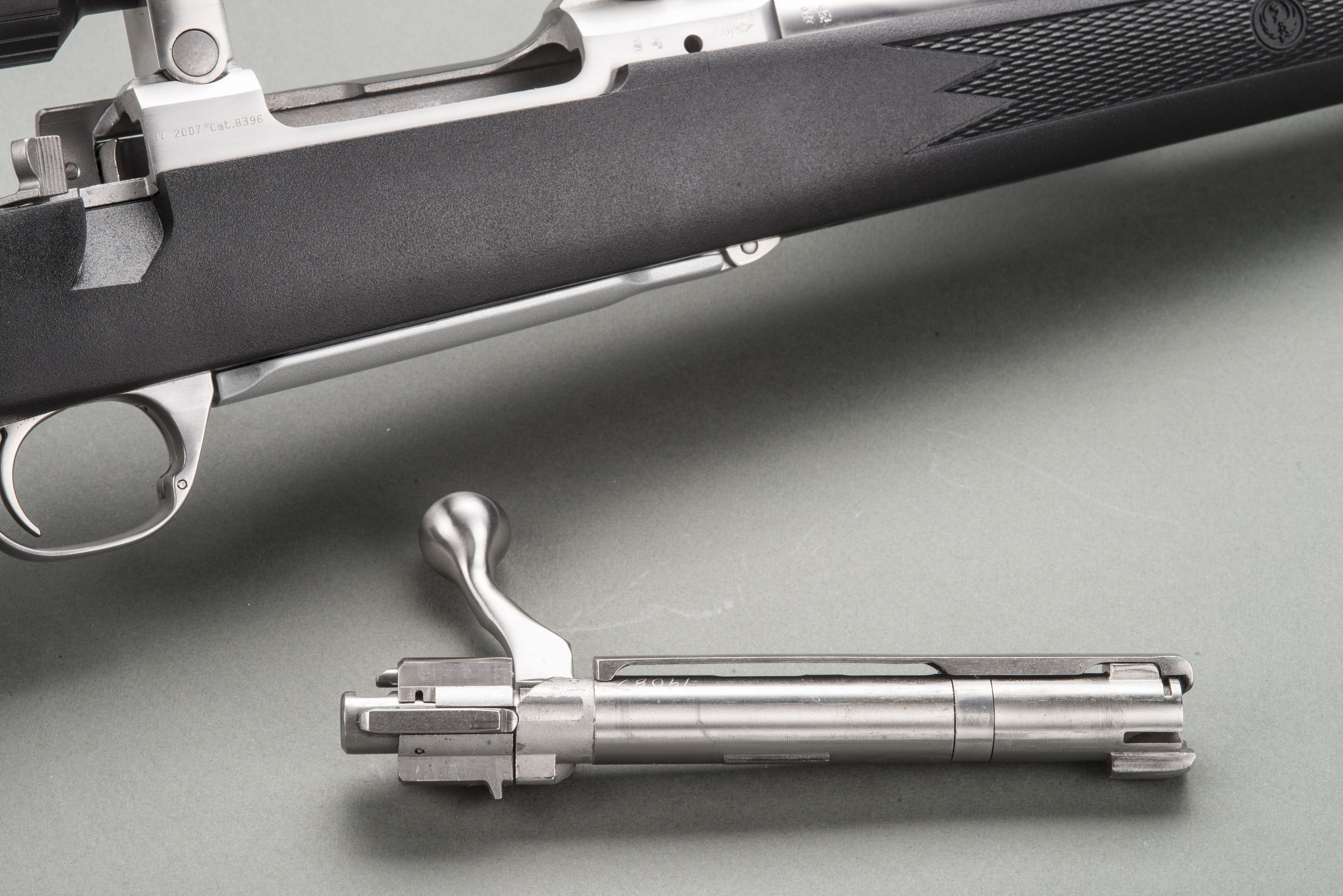 Alla voce carabine, il catalogo include (tra altro) il Ruger American Rifle, introdotto pochi anni fa e già oggetto di una recensione su queste pagine, e un altro bolt action, lanciato nel 1968 con il nome di M77. Un’arma che si ispira pesantemente a un’icona del XX secolo, il Mauser M98, nel frattempo sottoposto a una serie di aggiornamenti a opera di Jim Sullivan, un armaiolo che rimase nella galassia del produttore solo per tre anni. Le modifiche riguardavano inizialmente il sistema di produzione (non più quello standard che prevedeva lavorazioni dal pieno da un blocco forgiato ma, appunto, la fusione) e la ridefinizione di alcuni dettagli dell’otturatore, che comunque manteneva le due alette del sistema Mauser, come l’estrattore.