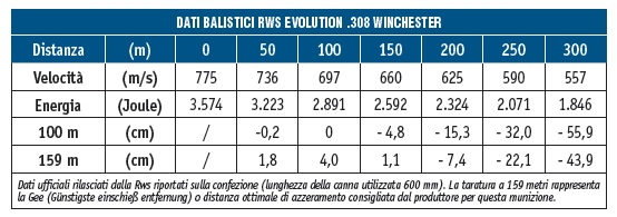 Rws Evolution calibro .308 Winchester: i dati balistici