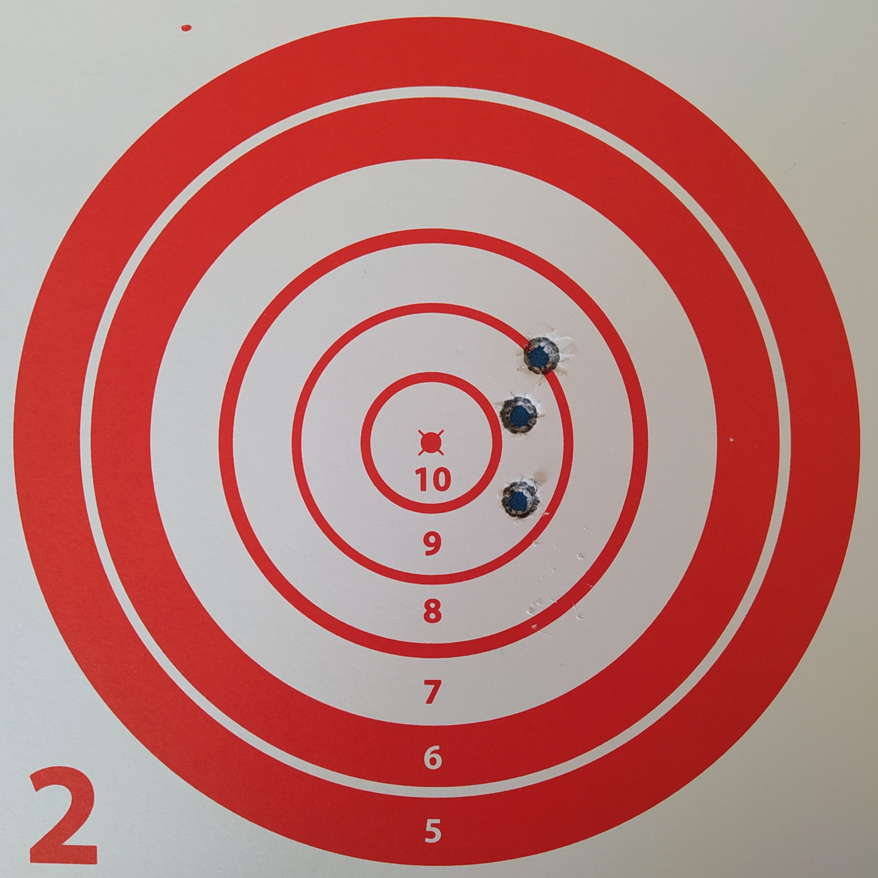 Sulla linea dei 100 metri le tre cartucce Evolution in calibro .308 Winchester hanno offerto una rosata da 28 millimetri considerando la distanza tra i due centri più lontani.