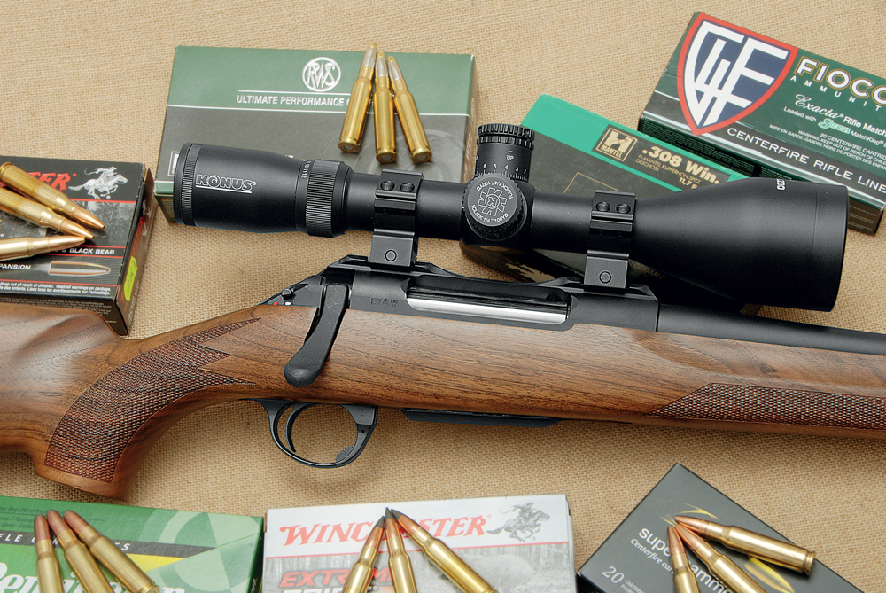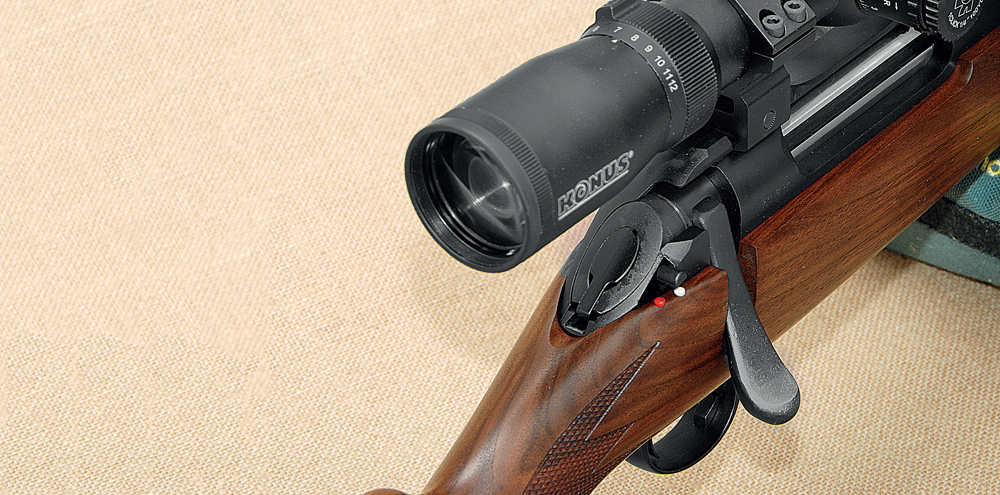 All’interno della canna, realizzata in acciaio titolato e ottenuta per martellatura a freddo, si trova l’innovativo profilo Mrr, una delle novità che hanno recentemente caratterizzato la produzione della Sabatti. Si tratta di un profilo che fa a meno dei classici spigoli vivi, sostituiti da una curva continua a due raggi: minore deformazione della palla, migliore sfruttamento dei gas, meno depositi parassitari, più facile pulizia e, soprattutto, una precisone invidiabile, come dimostrato dalle numerose vittorie in varie discipline ottenute con questo tipo di rigatura dalla Casa di Gardone. Il profilo della canna è tipicamente da caccia con una forte conicità iniziale e un diametro in volata di un pelo inferiore ai 16 millimetri; qui si trova poi una fi lettatura da mezzo pollice (1/2- 20tpi) utile per installare senza problemi un eventuale freno di bocca. Il fi letto è protetto da una boccola che si accoppia perfettamente con il resto della canna. La canna, lunga 60 centimetri e stabilmente unita al proprio barrel extension, è rimovibile facilmente svitando le tre viti sotto il ponte anteriore; la testa del perno è a vista nella parte anteriore della slitta Picatinny integrale, sporge all’interno del castello e funge da riferimento per il corretto montaggio della canna, andando a copiare il relativo scasso presente sul bordo della barrel extension. Sulla canna sono montate mire metalliche, nello specifico una robusta ed elegante tacca e un mirino regolabile in altezza, installato su un altrettanto elegante supporto: ovviamente il sistema primario sarà quello ottico o optoelettronico, ma avere mire di emergenza è sempre un bonus, senza contare che queste contribuiscono a caratterizzare la silhouette della carabina. Tutte le parti metalliche, a eccezione dell’otturatore, sfoggiano una finitura nero opaco, forse in controtendenza rispetto ad altre armi da caccia, ma molto funzionale sul terreno. Rimane da dire che, come su praticamente tutte le bolt action con tenoni ribassati e otturatore di grosso diametro, si può caricare colpo per colpo ma solo dopo aver abboccato in camera la cartuccia; se la si lascia semplicemente cadere nella finestra di espulsione, si impunterà quasi certamente contro il bordo della canna. Lo scatto è quello tipico Sabatti, come sempre ottimo: a richiesta è possibile avere anche lo stecher che riduce drasticamente il già basso sforzo richiesto per lo sgancio del percussore.
