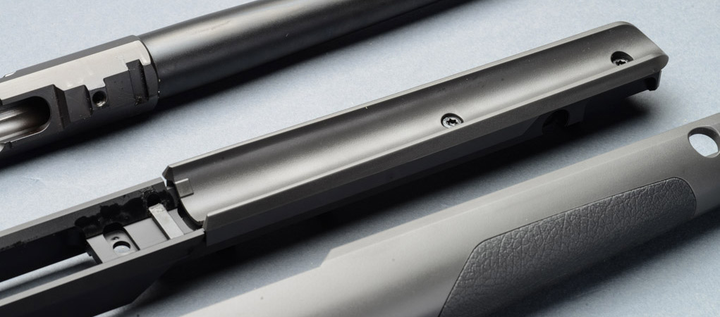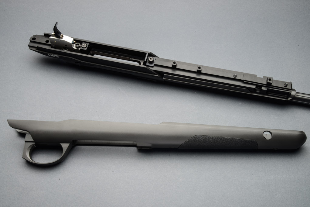 Tutto parte dal telaio. Realizzato in alluminio anodizzato, costituisce l’interfaccia tra l’azione – a cui è collegato da tre viti Torx – e tutto il resto, segnatamente calciatura e astina che, in questo modo, risultano intercambiabili e altamente configurabili. L’arma viene infatti proposta nelle versioni Hunter e Precision, quindi dedicate al tiro di caccia e a quello sportivo, che grazie alla modularità del sistema sono tra loro intercambiabili. Azione e canna sono le medesime.