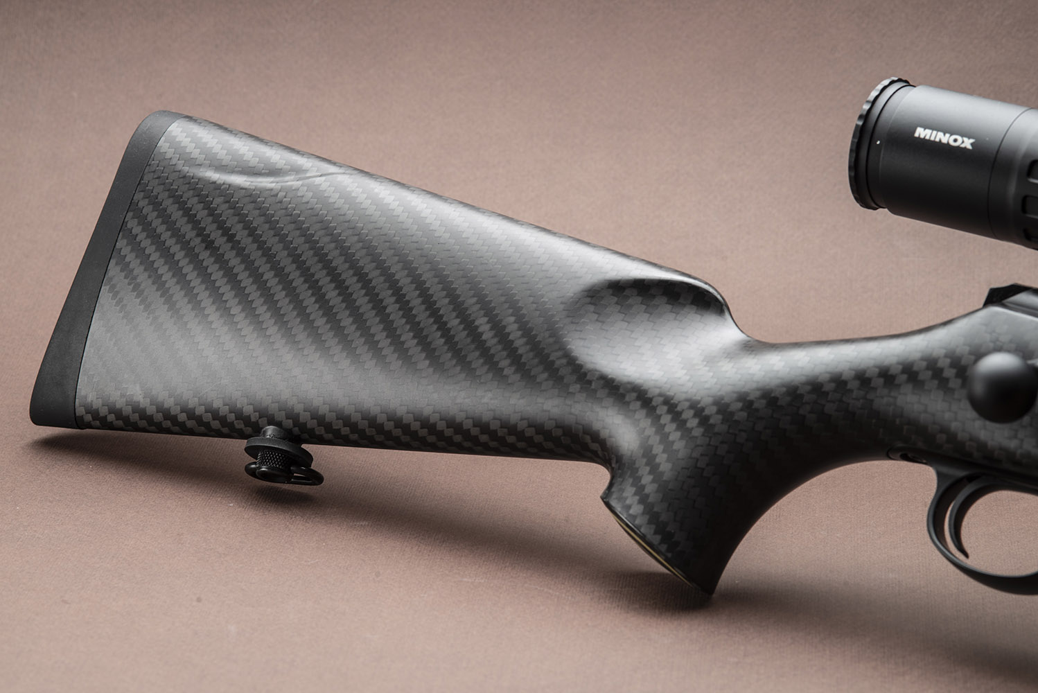 La vera peculiarità della Highland XTC è la calciatura, realizzata mediante la sovrapposizione manuale di fogli in fibra di carbonio da un’azienda ad alta tecnologia che lavora in partnership con Sauer. Ne risulta un componente estremamente leggero che porta a un peso complessivo di circa 2.500 grammi: l’omologa arma in allestimento Classic – con calcio in noce – ha una massa di 3.050 grammi. Il risparmio è evidente e si manifesta con una maggior facilità di porto e trasporto. Nonostante il materiale scelto per la sua realizzazione, la calciatura conserva i contenuti tecnologici presenti in tutte le versioni: anzitutto un bedding in alluminio, brevettato, denominato Ever Rest. È affogato nel calcio e la carcassa è fissata mediante due bulloni. L’accoppiamento è quindi stabile pur conservando l’architettura a canna flottante che esalta la precisione del complesso.