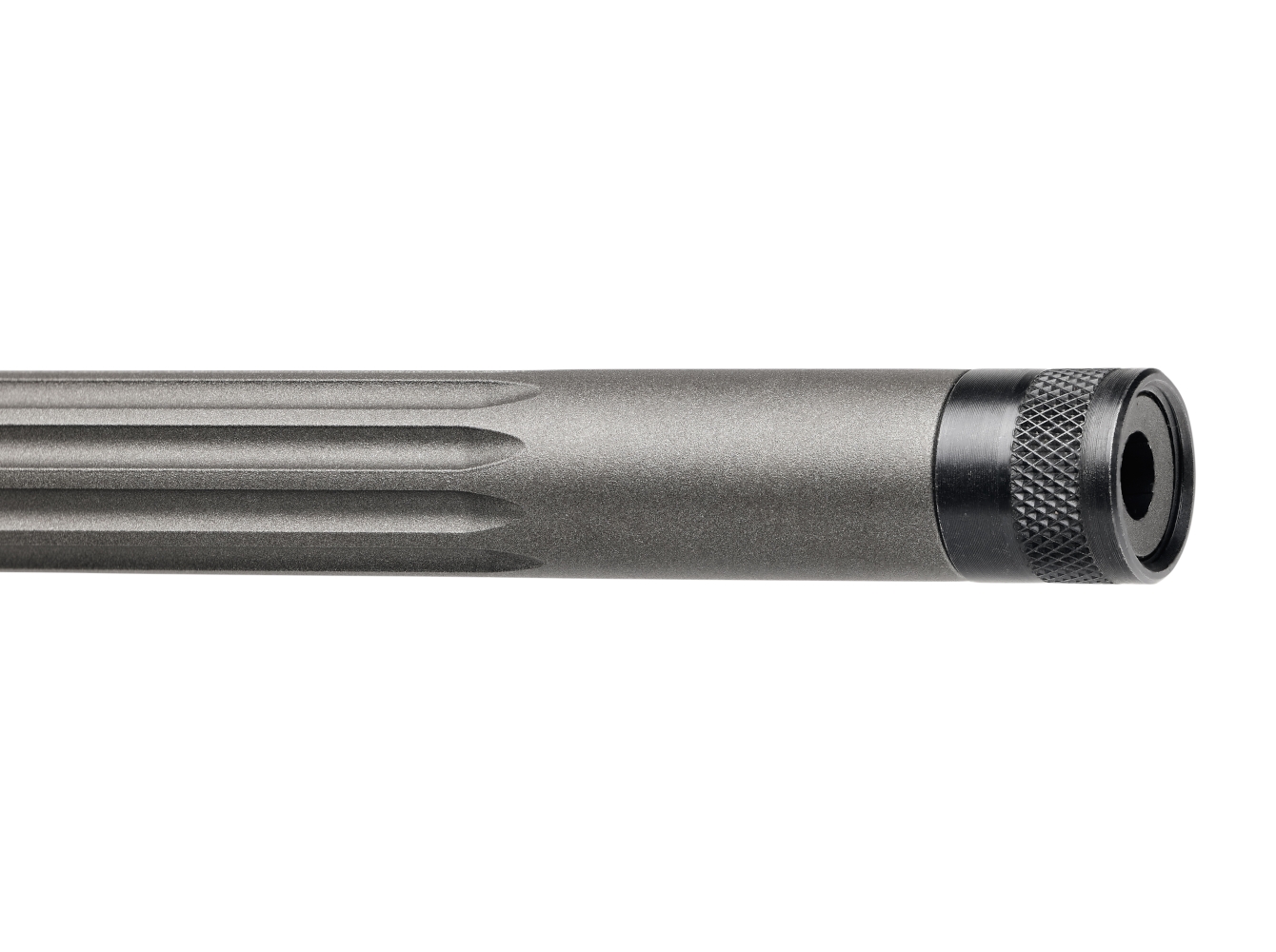 Lunga 510 millimetri (non però nel .350 Legend, in cui si ferma a 457), la canna fluted filettata ottenuta tramite bottonatura di una barra in acciaio al carbonio è rivestita di una finitura Cerakote Tungsten, la stessa impiegata per l’azione.