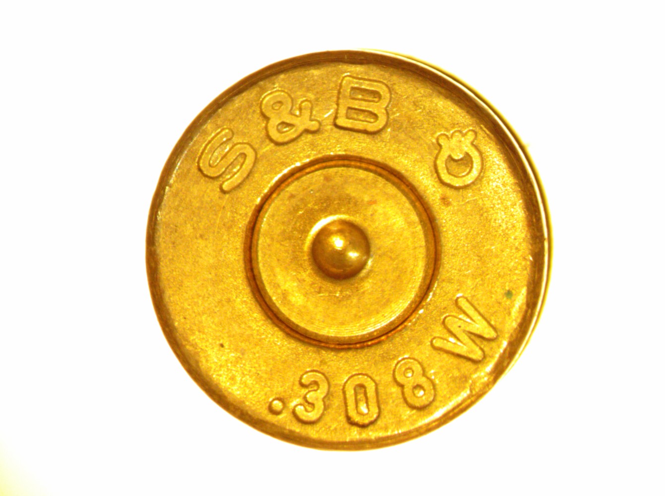 Anche i bossoli in calibro .308 Winchester sono di proprietà della Sellier & Bellot. Sul fondello è impressa in alto la sigla S&B che richiama alla denominazione del produttore, mentre al lato opposto è riportata l’indicazione del calibro di destinazione. Sul fianco destro del fondello, appena sotto la marcatura aziendale, compare una piccola grafica raffigurante una bomba. Anche l’innesco è di realizzazione interna.