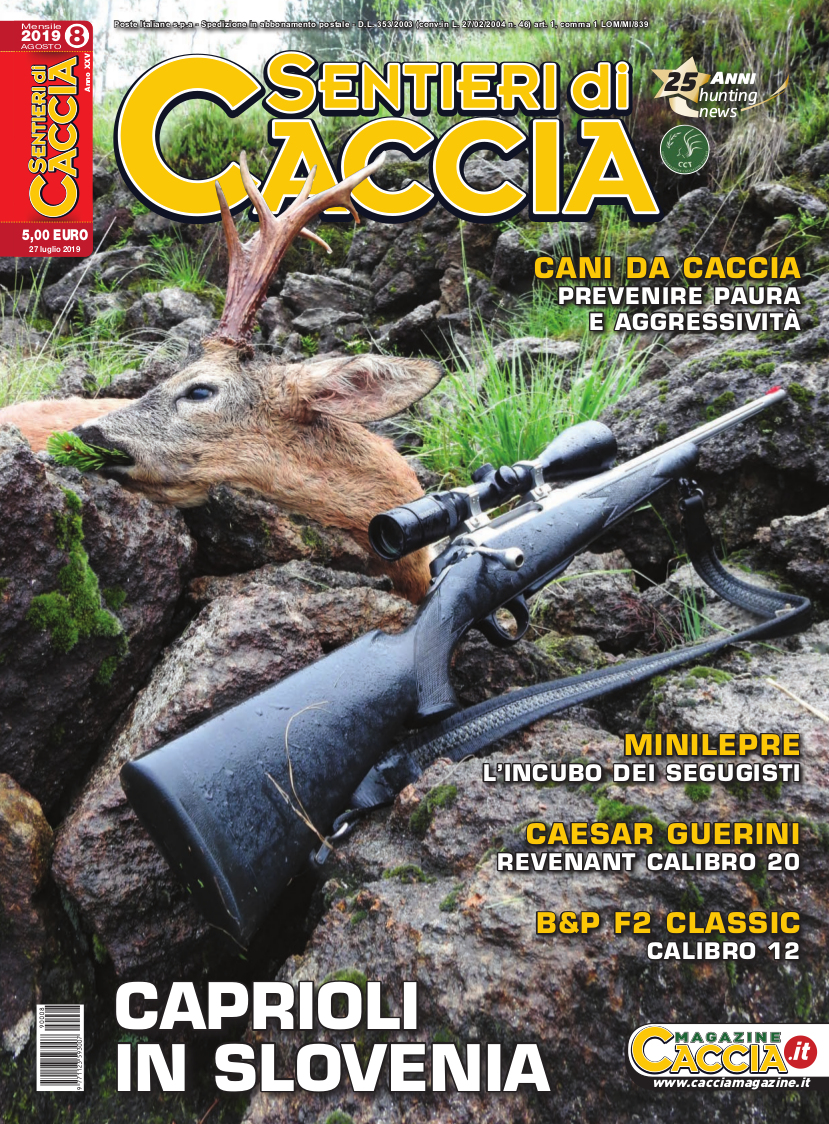 Lo stesso Bertini firma il test del fucile sovrapposto Caesar Guerini Revenant calibro 20, nominato “Best Shotgun 2019” dalla rivista Outdoor Life Magazine. Giuseppe Cerullo lo affianca con la recensione delle munizioni Baschieri & Pellagri F2 Classic, sviluppate per la caccia alla penna.