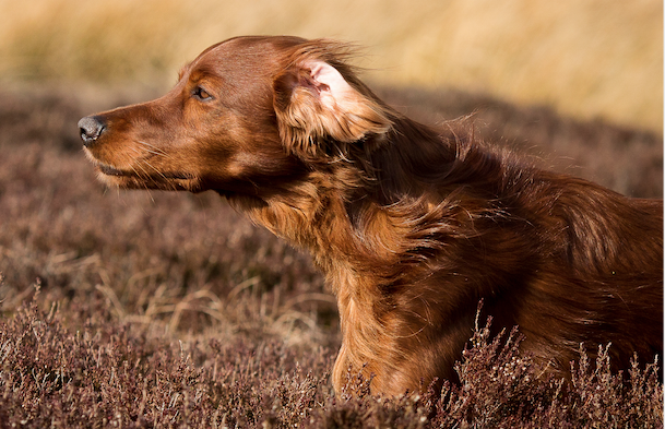 Il setter irlandese, da sempre un po’ frainteso e ritenuto il fratello minore dell’inglese, ha invece una sua identità, forte e decisa, che non gli fa temere alcun confronto.