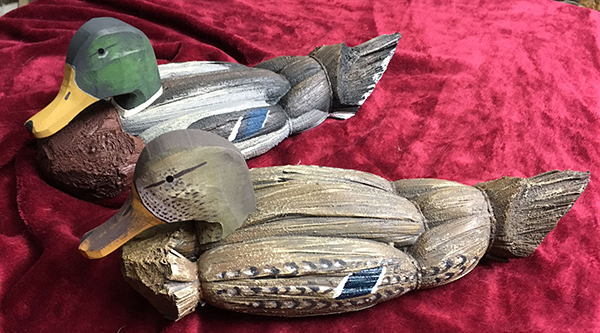 Ma non di sola plastica vive l’uomo cacciatore. Così, tornando un po’ indietro nel tempo, troviamo stampi che, ai nostri occhi, paiono vere opere d’arte. Gli artigiani, o forse sarebbe più corretto definirli artisti, partendo da ciò che la natura delle zone umide offriva sapevano creare sagome di rara somiglianza ed efficacia intrecciando i giunchi e la tifa, detta anche paviera (Typha latifolia), oppure modellando armoniosamente il legno.