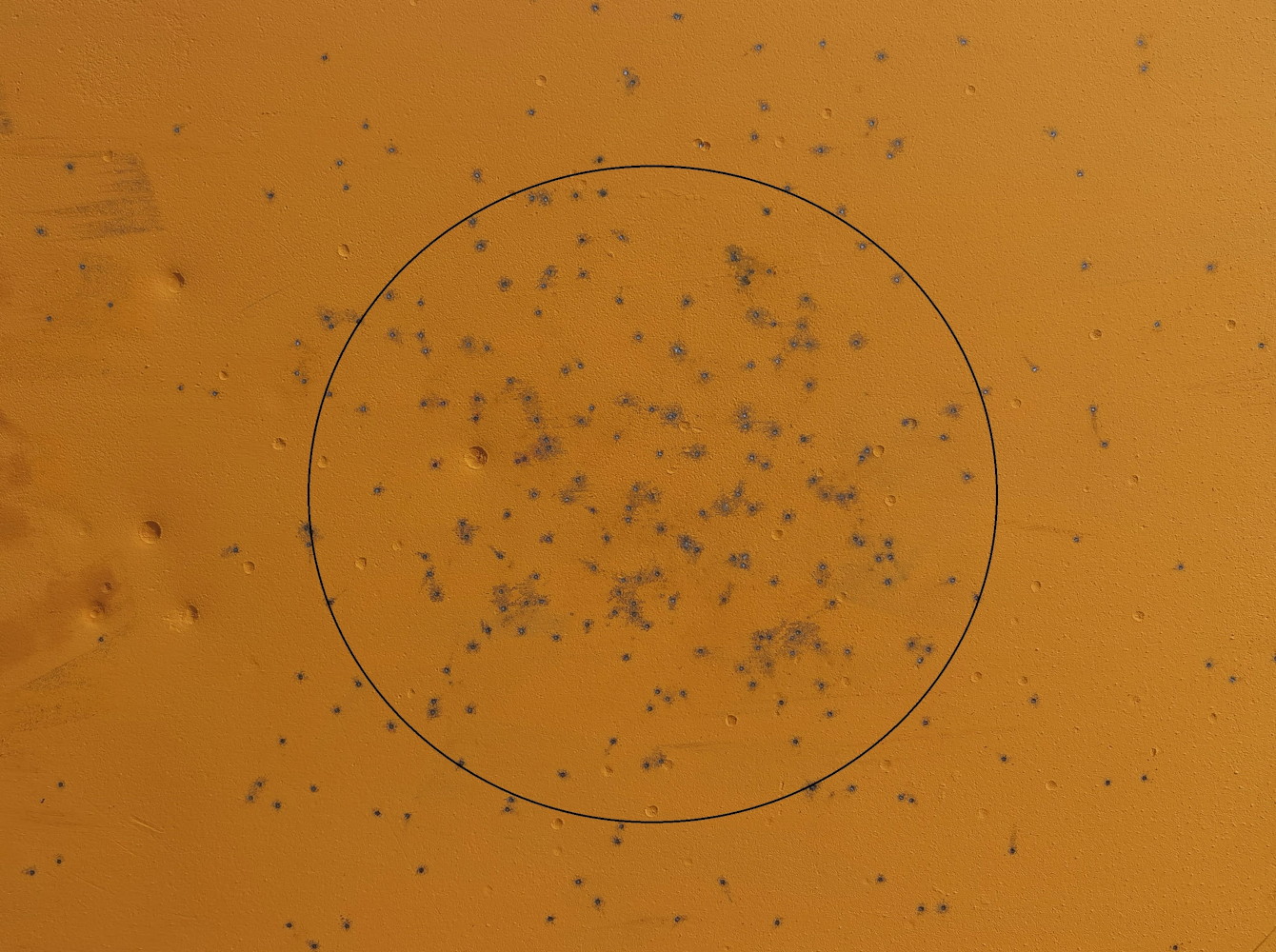 I risultati sono stati molto buoni, in alcuni casi addirittura sorprendenti. Ho ottenuto rosate concentrate, ma soprattutto ben guarnite: almeno sulla lastra d’acciai, i pallini vanno a riempire bene gli spazi di impatto. Se lo scopo di Brain chokes era assicurare una rosata guarnita in tutti i settori, mi sento di dire che è stato raggiunto in pieno. Fra l’altro con risultati notevoli praticamente a ogni sparo e distanza considerata, anche se a 40 metri cominciavano a mostrare la corda; forse anche per la cartuccia utilizzata, non idonea a tiri particolarmente lunghi.