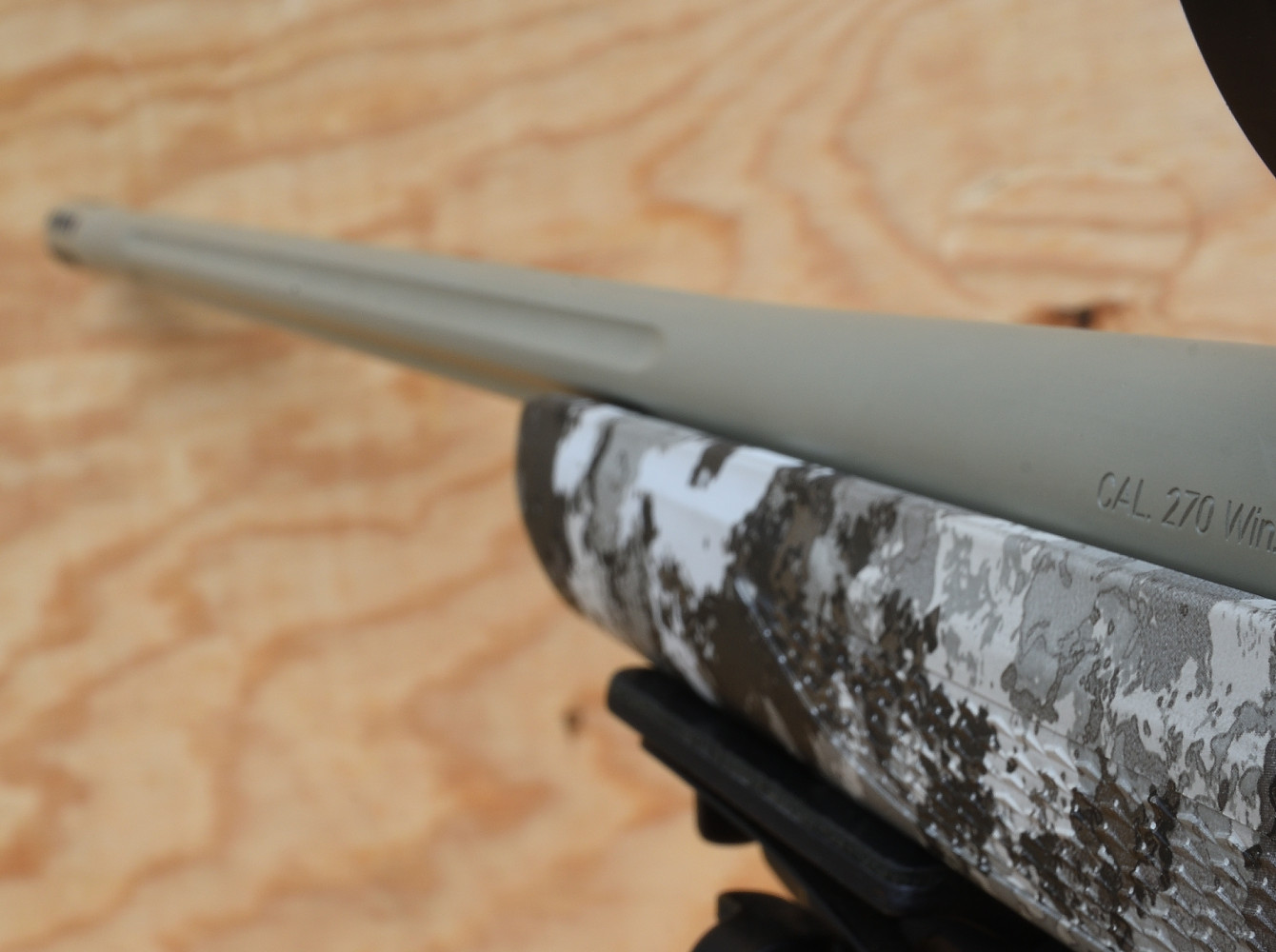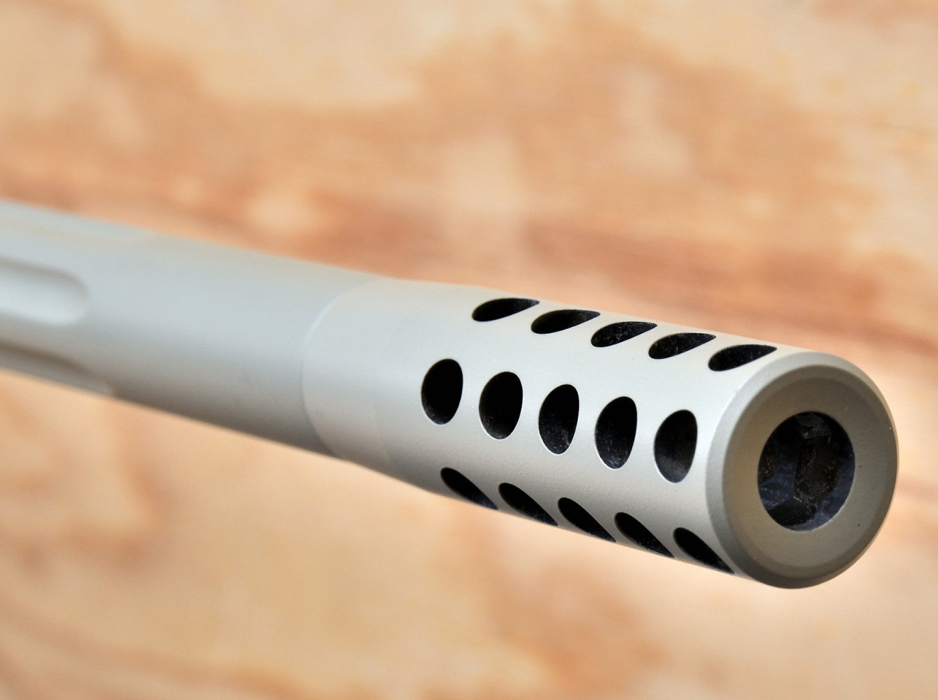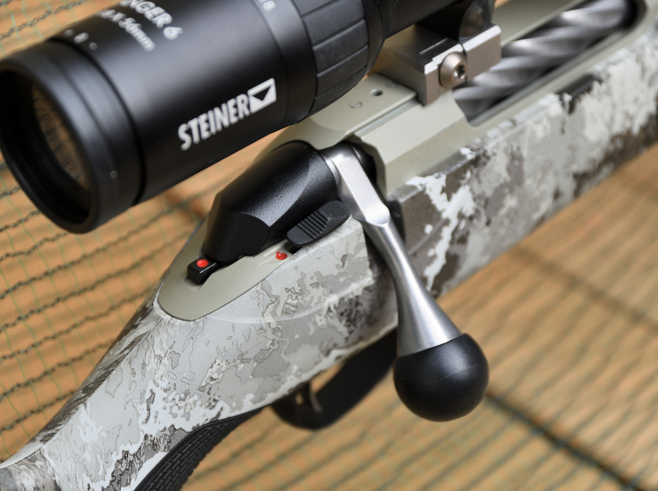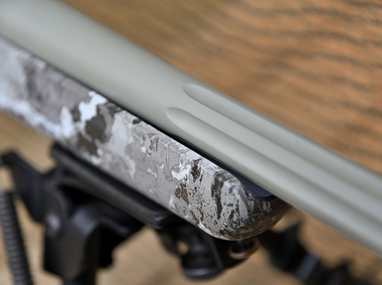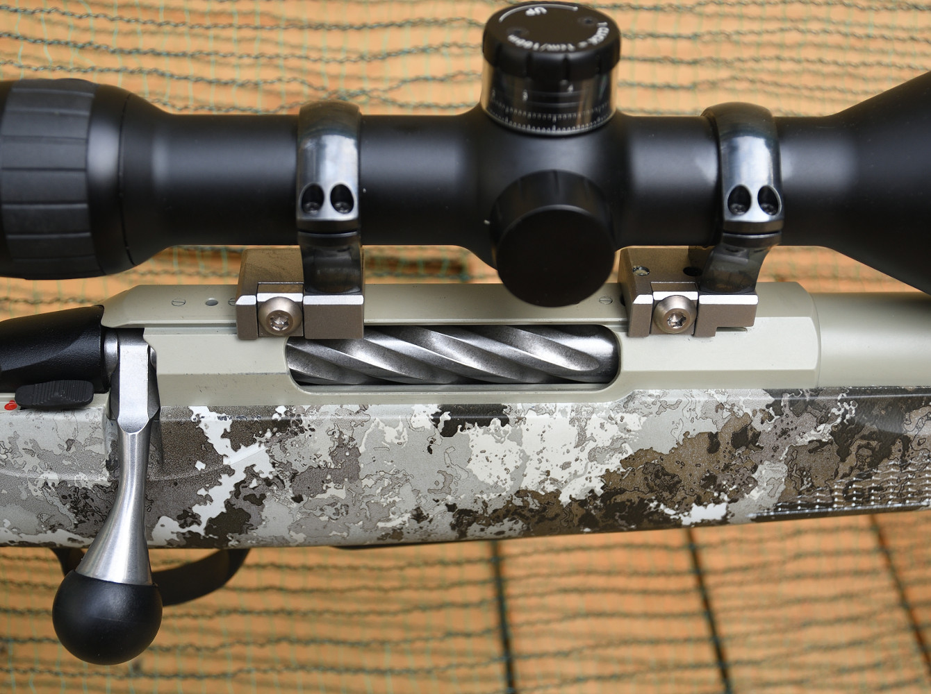 Il cuore delle carabine Tikka è l’insieme canna-azione. La canna è lunga 620 millimetri, con passo di 1:10”, scanalata longitudinalmente e dotata di freno di bocca applicato sulla volata filettata; l’azione è la stracollaudata T3, affidabile e sicura. C’è inoltre un plus notevole: l’otturatore è lavorato esternamente, le scanalature elicoidali eleganti lo solcano per tutta la sua estensione; in testa i due tenoni di chiusura contrapposti a 180°, l’estrattore a unghia e l’espulsore a bottone, ricavati nel recesso della faccia dell’otturatore.