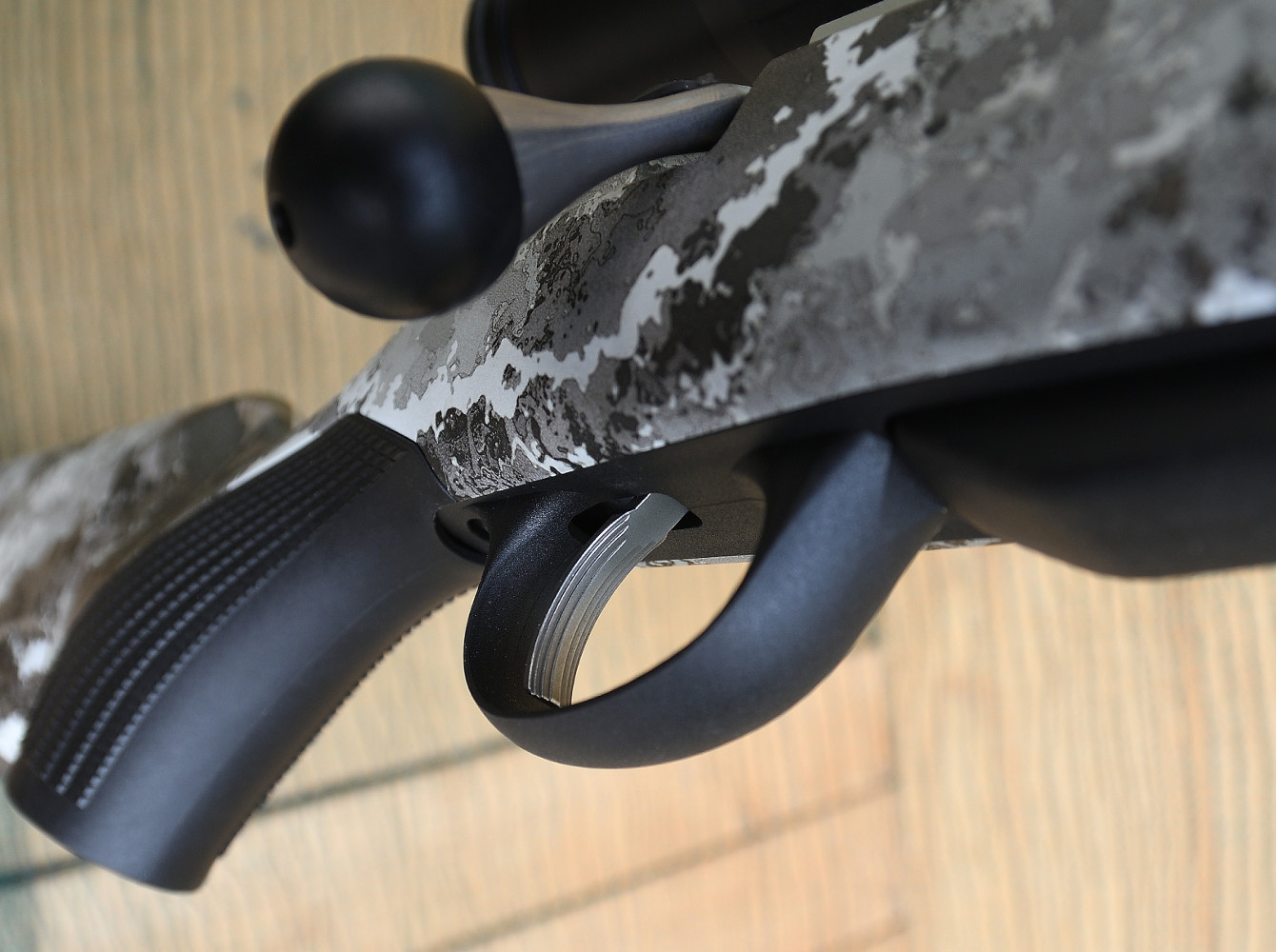 Lo scatto è diretto e agilmente regolabile tramite una chiave a brugola che può raggiungere il grano direttamente dal lato posteriore del bocchettone di alimentazione del caricatore, senza quindi la necessità di smontare la carabina dalla calciatura. Out of the box la protagonista della prova fa registrare un peso di sgancio pari a 1.850 grammi; dopo aver tirato la brugola di regolazione ho raggiunto il peso di 806 grammi (media di cinque letture eseguite con verificatore digitale Lyman).