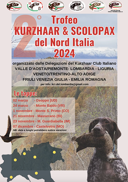 ll trofeo Kurzhaar & Scolopax del Nord Italia si basa su prove specialistiche a beccacce dedicate a soli kurzhaar. E’ un circuito annuale che comprende prove primaverili, autunnali e invernali organizzate nel territorio del Nord Italia, in ambienti prevalentemente montani o prealpini.
