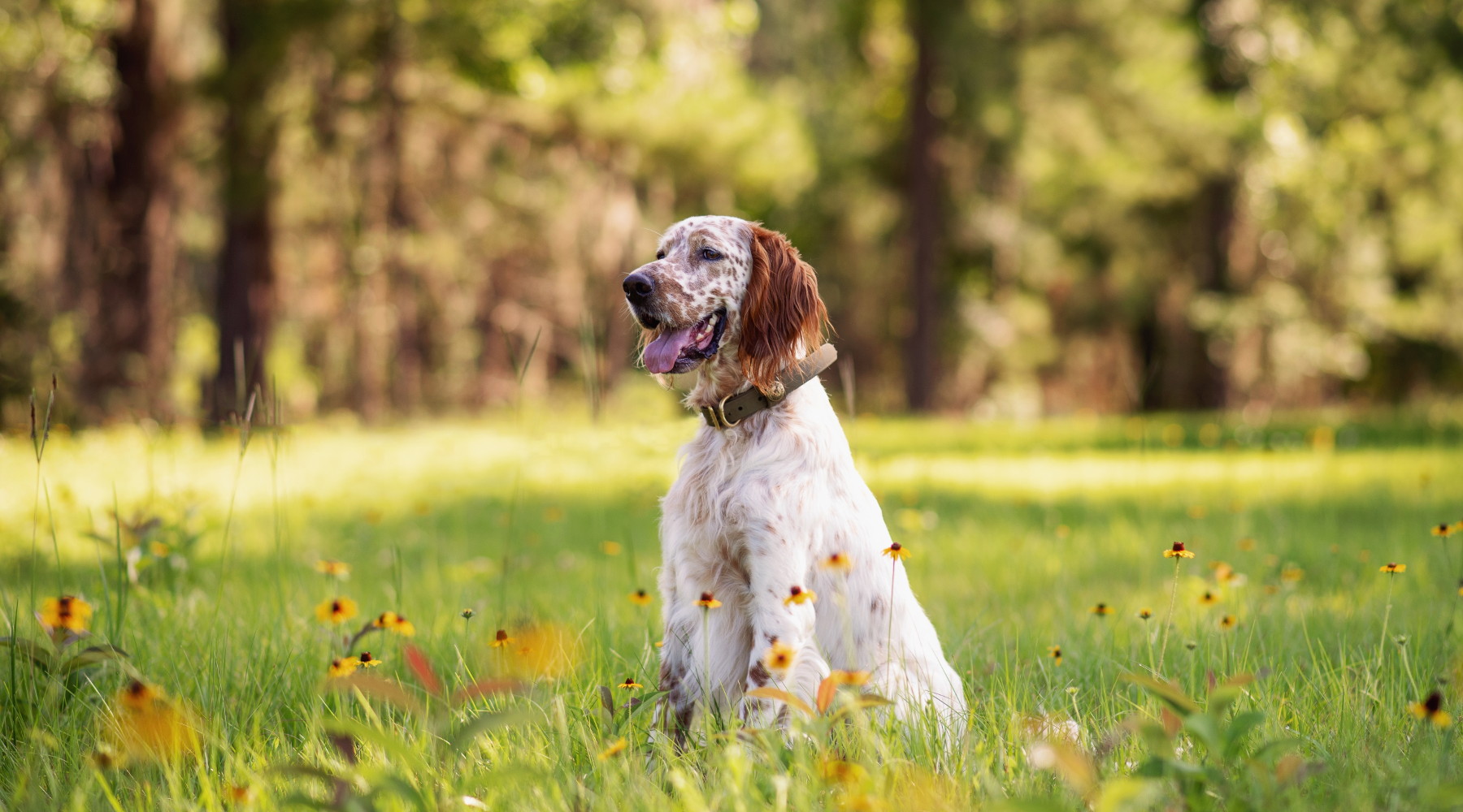 Uccisi cani dei cacciatori a Piombino: setter da caccia seduto