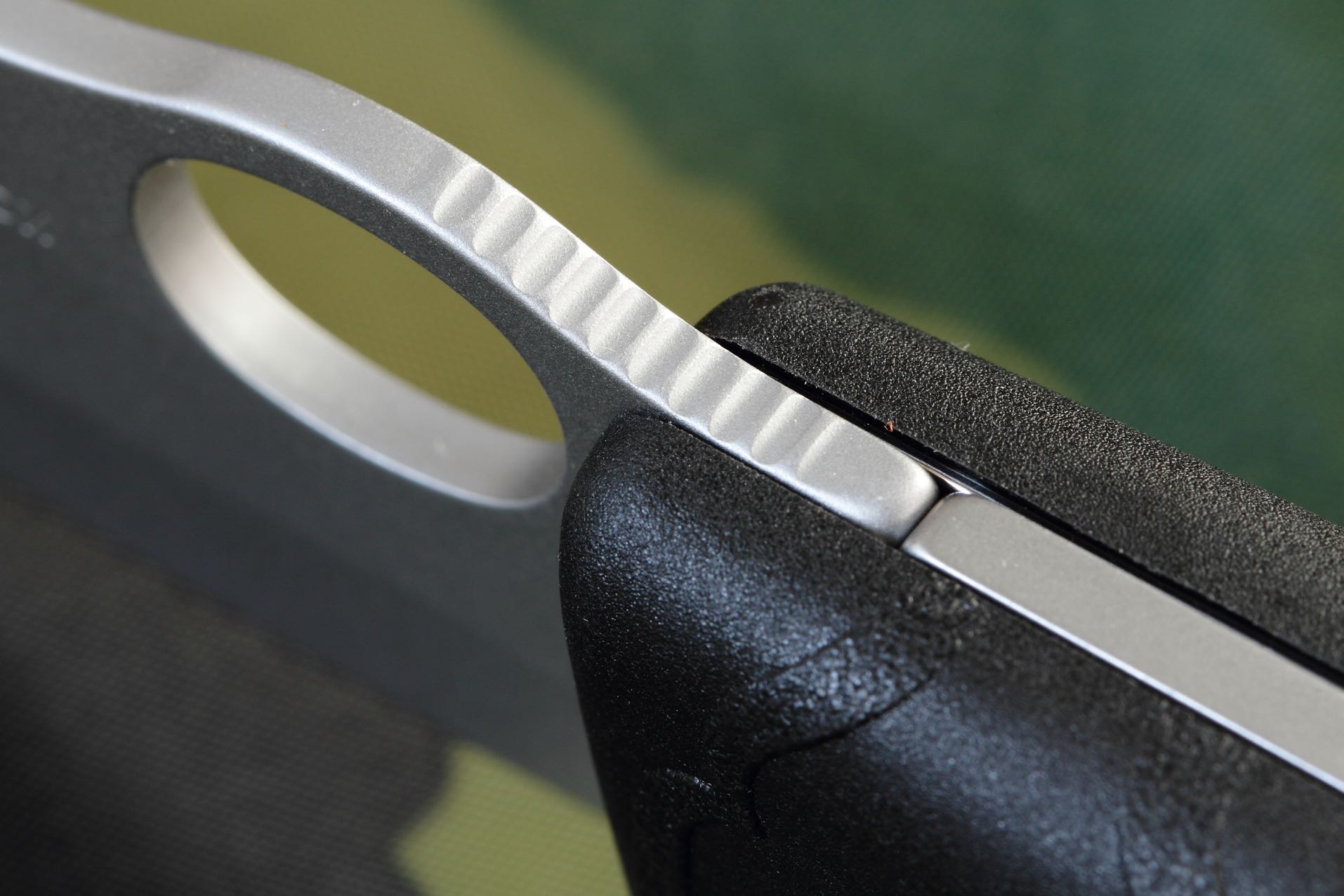 La superficie è micropallinata, il che non rappresenta un problema dato che il materiale resiste bene all’ossidazione. L’apertura è affidata a un foro ovale, ben dimensionato anche per le mani guantate.