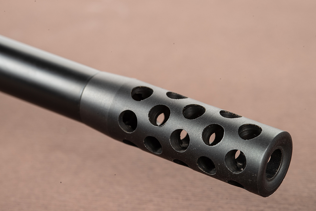 Tornando all’azione, in posizione superiore a cavallo della finestra d’espulsione sono realizzati quattro fori: servono ad applicare basi per il montaggio di sistemi ottici di acquisizione del bersaglio. In previsione del test, i tecnici dell’importatore hanno provveduto all’applicazione di due spezzoni Picatinny ai quali sono poi stati assicurati gli anelli da 30 millimetri per il montaggio di un cannocchiale Nightforce. La canna, martellata a freddo con un passo di rigatura di 1:10” nel calibro in uso, è sprovvista di mire metalliche ma monta alla volata il freno di bocca Accubrake ST in grado di ridurre la sensazione del rinculo, secondo i dati forniti dal costruttore, fino al 53%. La precisione è garantita entro il Moa con munizioni Weatherby o premium di altri produttori commerciali.