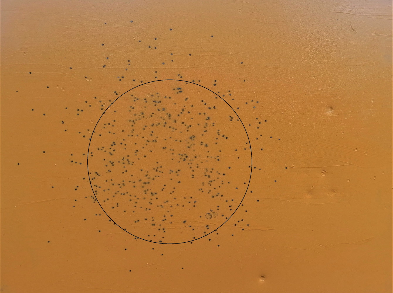 Già molto ampia nel nostro classico cerchio di riferimento da 750 millimetri di diametro, a 12 metri la rosata si rivela in grado di vincere anche eventuali ostacoli vegetali che si dovessero frapporre fra la beccaccia e le canne del fucile; questo in virtù dell’elevata grammatura e della buona forza degli impatti sulla lastra di acciaio.