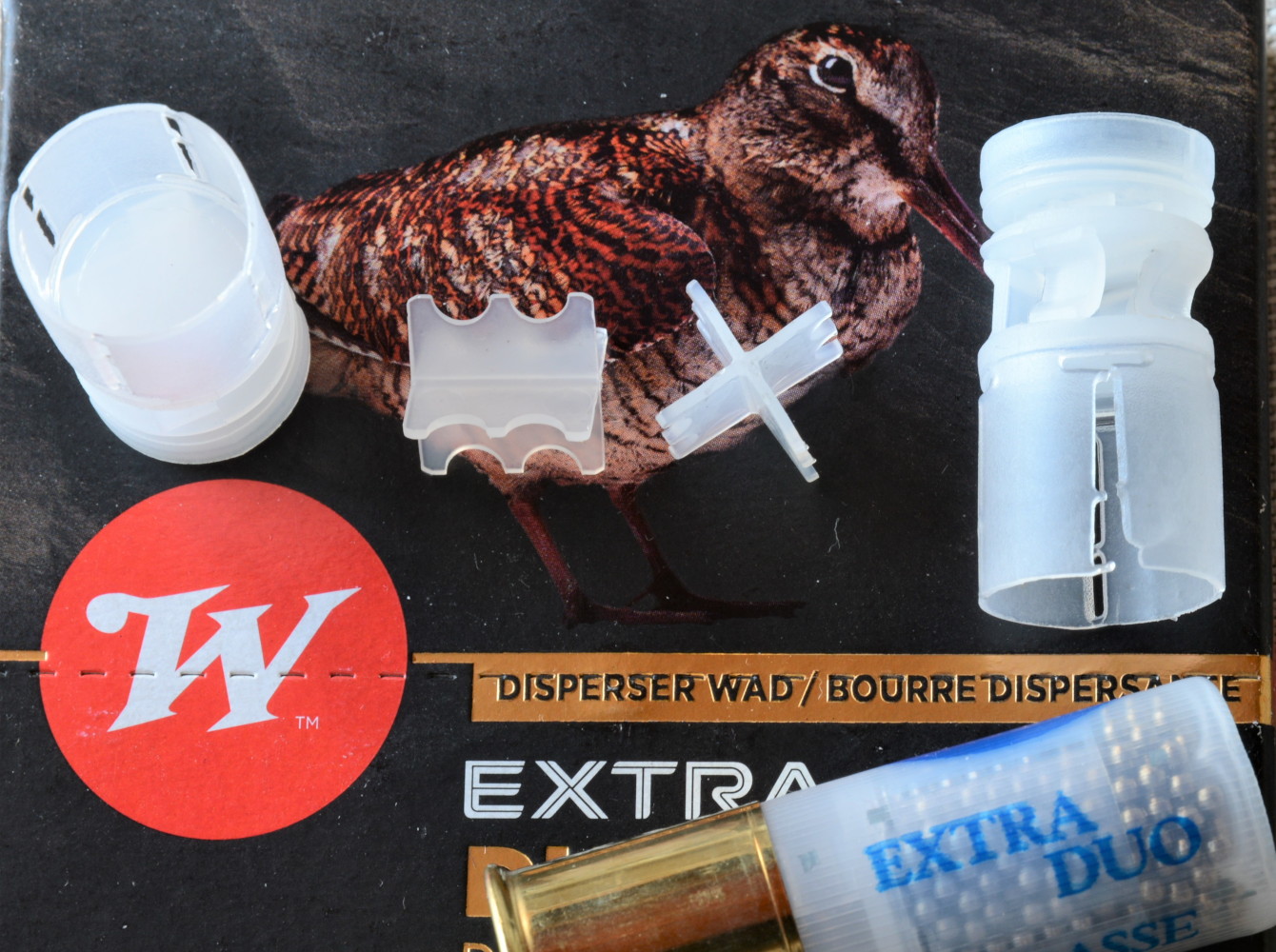Ospita dieci cartucce la scatola delle munizioni Winchester Extra Duo Bécasse, dalla grafica decisamente accattivante sotto il profilo estetico. La fotografia di una beccaccia fa infatti bella mostra di sé. Lo sfondo scuro e la foto ben contrastata, nella quale si apprezzano i suoi splendidi colori autunnali, raggiungono lo scopo prefissato: attirare l’attenzione.
