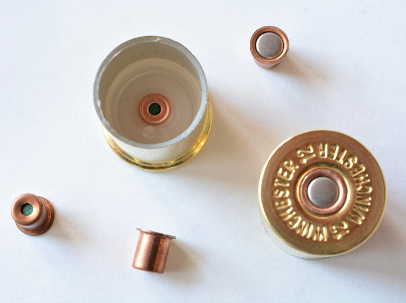 Il bossolo è marchiato Winchester sul fondello, e reca quello che pare essere il potente innesco Nsi 688, caratterizzato dal corpo ramato e dalla vernice protettiva copri foro di vampa di colore verde (di intensità variabile nei lotti che si sono succeduti negli anni).