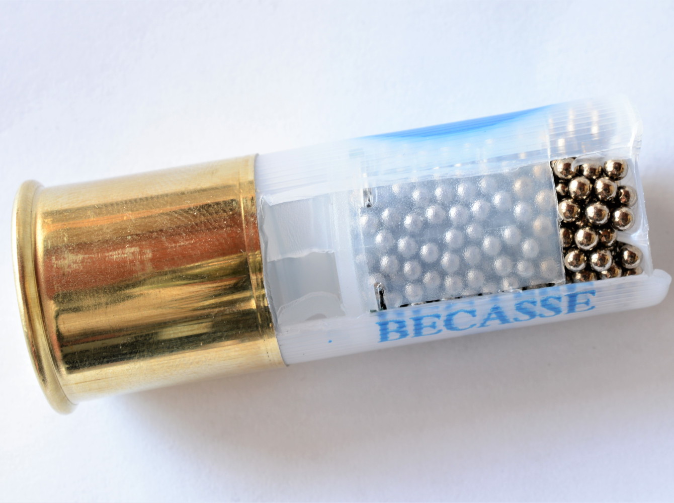 Appare decisamente azzeccata anche la scelta del bossolo alto 70 millimetri, trasparente; si nota immediatamente un poderoso fondello tipo 4 ottonato alto 20 millimetri. Le scritte apposte sul bossolo sono in vernice blu, accattivante. La leggibilità è ottima; la vernice tende a non scolorire neppure dopo diversi passaggi per le mani: un miglioramento qualitativo facilmente percepibile rispetto ad altre cartucce del passato.