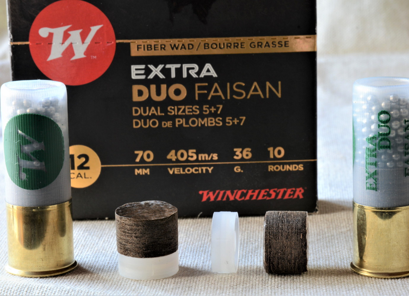 La denominazione della Winchester Extra Duo Faisan segnala già che si è in presenza di una carica di piombo composta da due numerazioni. I 36 grammi dichiarati sono suddivisi circa a metà: poco più di 18 grammi di piombo numero 7 (2,5 millimetri di diametro) nella parte bassa della cartuccia (più vicina al fondello, per intenderci), circa 18 grammi di piombo più grande numero 5 (2,9 millimetri di diametro) al di sopra.
