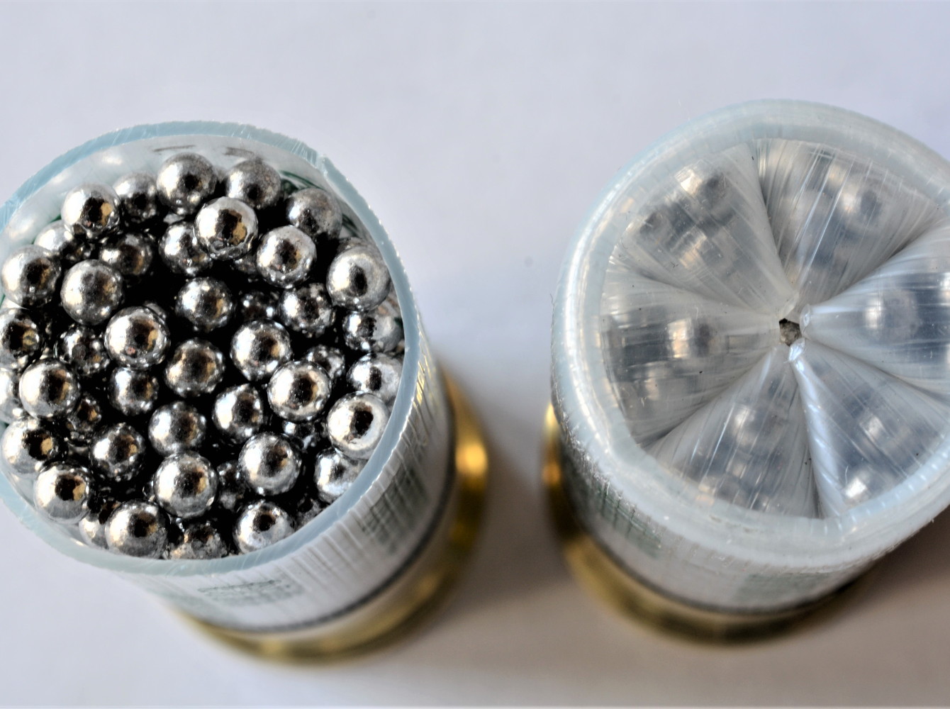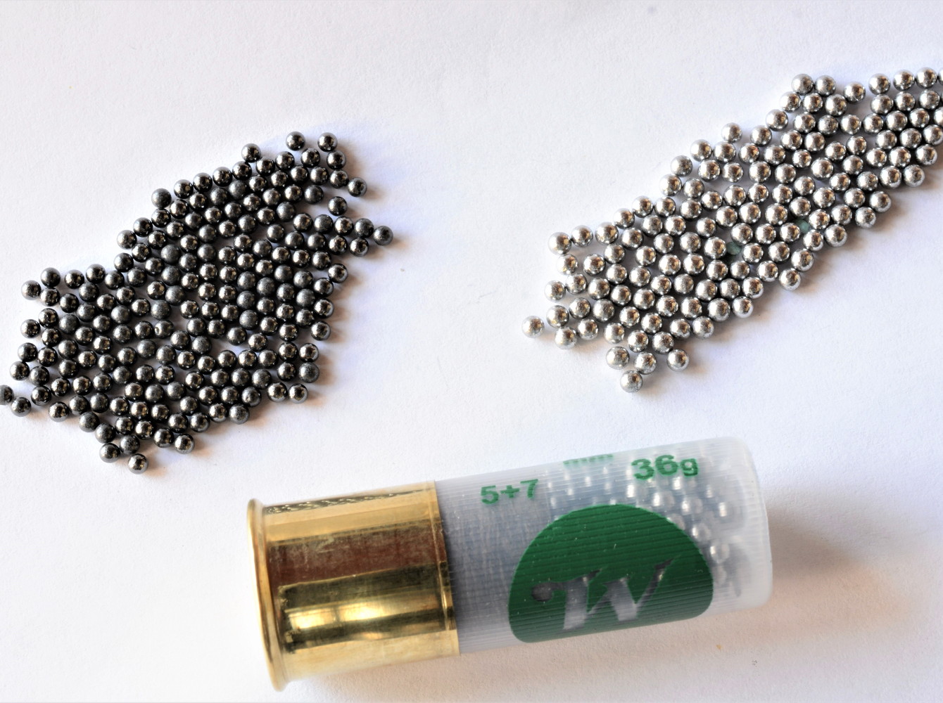 Il piombo numero 7 è del tipo standard, nero; quello numero 5 è grafitato bianco, più appariscente. Decisamente buona la qualità di entrambi. La strutturazione serve garantire una buona uniformità di rosata, anche nei tiri più impegnativi; ottima la scelta delle due numerazioni, in grado di intercettare efficacemente il fagiano sia a inizio stagione, sia in stagione avanzata quando il piumaggio risulta più folto e protettivo.