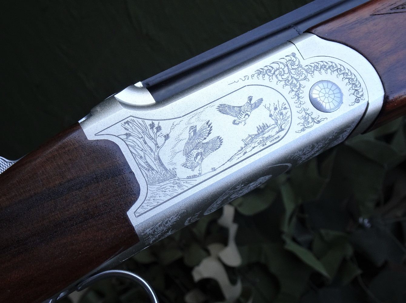 - Bascula: in Ergal 7075 con finitura nichelata e incisioni con volute ornamentali e scene di caccia