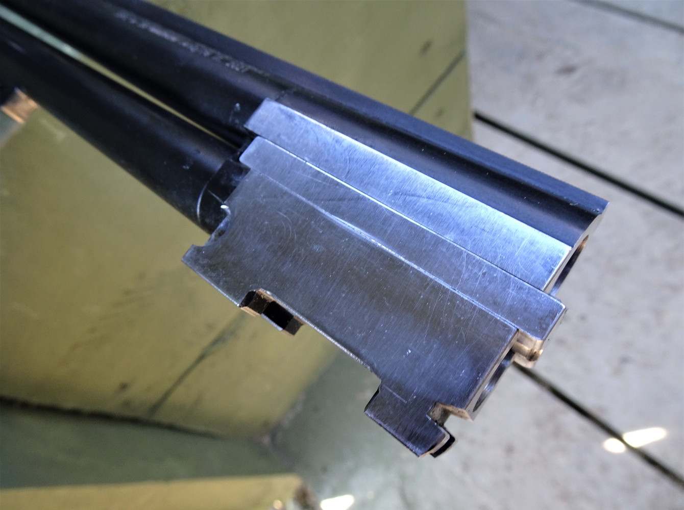 Il monoblocco è semplice, non finito a bastoncino ma ben realizzato; gli estrattori sono manuali, e per un’arma destinata alla caccia non è un difetto. Realizzate in acciaio 4140, sull’esemplare in prova le canne sono lunghe 710 millimetri; sono cromate internamente e non presentano i bindellini laterali, per una maggior leggerezza complessiva (ovviamente le canne sono unite in volata e nei pressi del monobloc). Il peso si attesta ben al di sotto dei 2.500 grammi: fornisce una sensazione di leggerezza, ma nel contempo di controllabilità. La bindella superiore è zigrinata, ventilata a ponticelli larghi, e termina con un semplice mirino puntiforme in ottone.