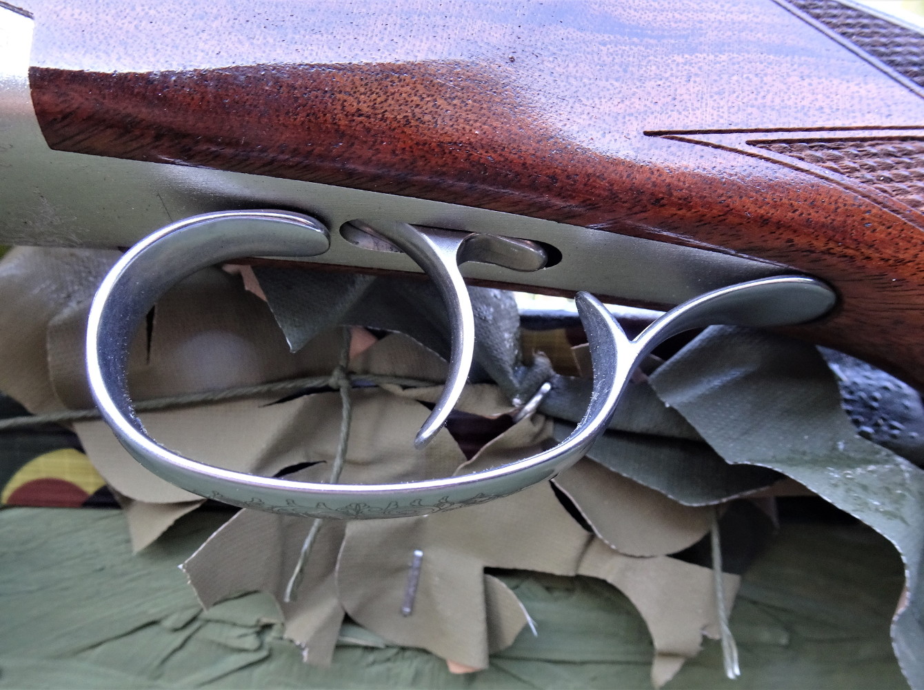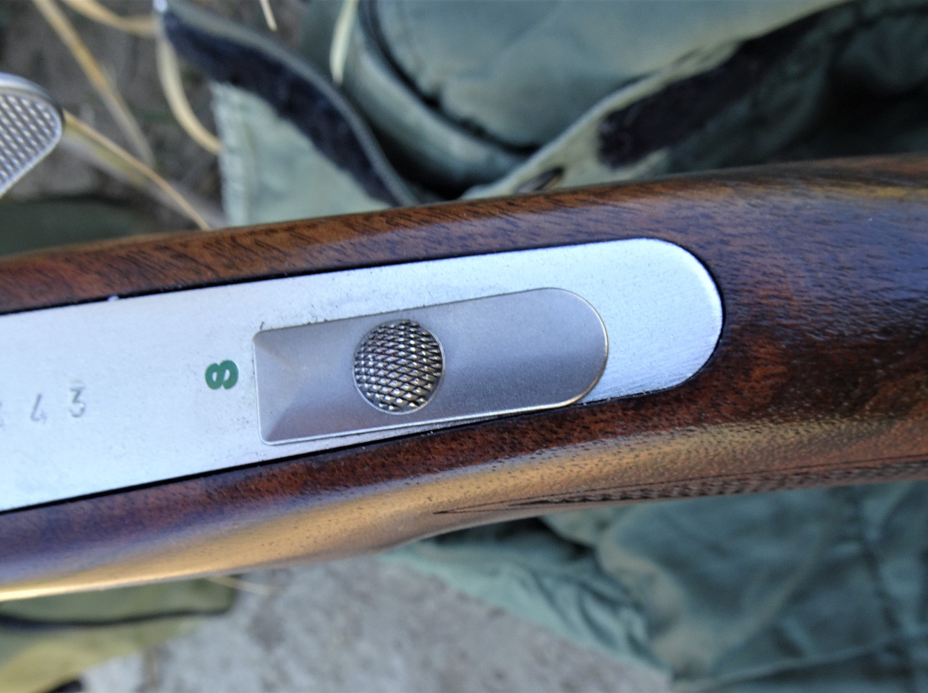 Non vi sono indicazioni sulla canna selezionata; quando il cursore è leggermente decentrato a destra spara per prima la canna inferiore, quando è leggermente decentrato a sinistra spara per prima la canna superiore. Il ponticello risulta piuttosto ampio e confortevole nell’accesso anche con dita protette da guanti; la pala del monogrillo selettivo appare ben conformata e munita di una comoda curvatura per la falange del dito deputato all’azionamento.