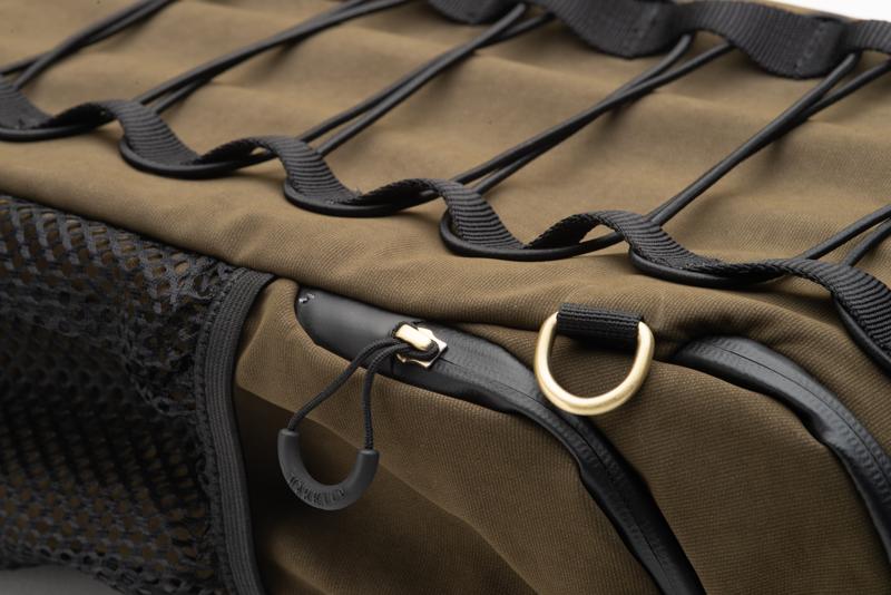 Il tessuto utilizzato è “puro” poliestere 100%, una fibra artificiale che garantisce la resistenza all’acqua in ogni condizione. Le chiusure sono affidate a robuste cerniere YKK nastrate. Per eliminare qualsiasi tipo di possibile infiltrazione nelle condizioni meteo più estreme, lo Slimpack Compact viene comunque fornito di una copertura impermeabile di colore arancio che svolge la doppia funzione di protezione dalle intemperie e massima visibilità quando occorra.