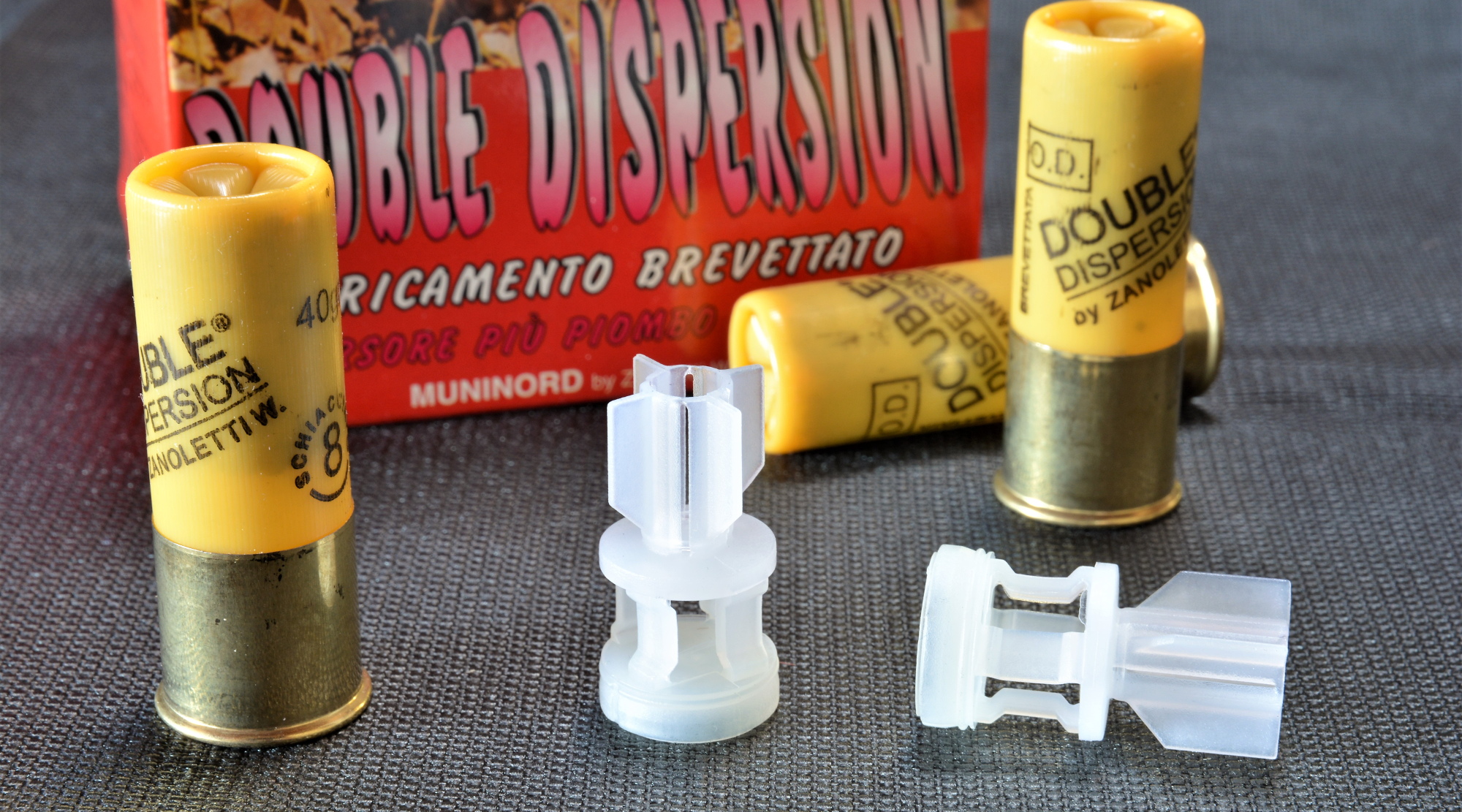 Per il borraggio della Double Dispersion si è fatto ricorso a un dispersore della Baschieri & Pellagri. Risulta formato da una base autoregolante dotata di sistema ammortizzante, nonché di un contenitore a frattura programmata (con alette esterne) in grado di contenere alcuni pallini e di portarli più avanti nello spazio senza creare buchi nella rosata.